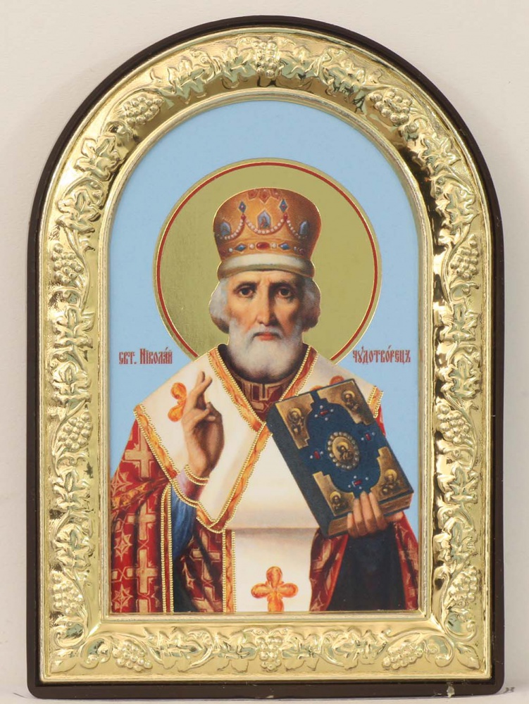 Икона в пластмассовой рамке 6х9 арочная №2 Николай Чудотворец 14