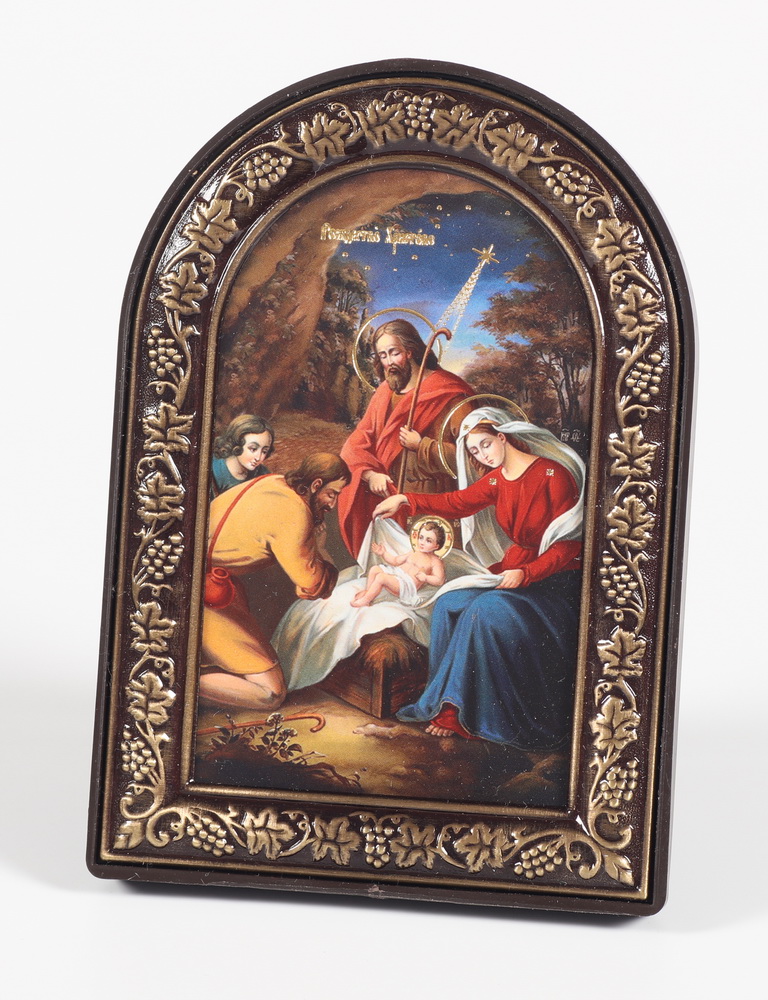 Икона в пластмассовой рамке 6х9 арочная №3 Рождество Христово
