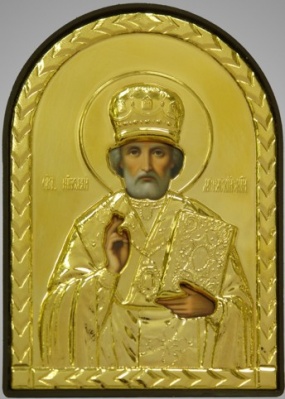 Икона в пластмассовой рамке 6х9 арочная риза №1 Николай Чудотворец 14