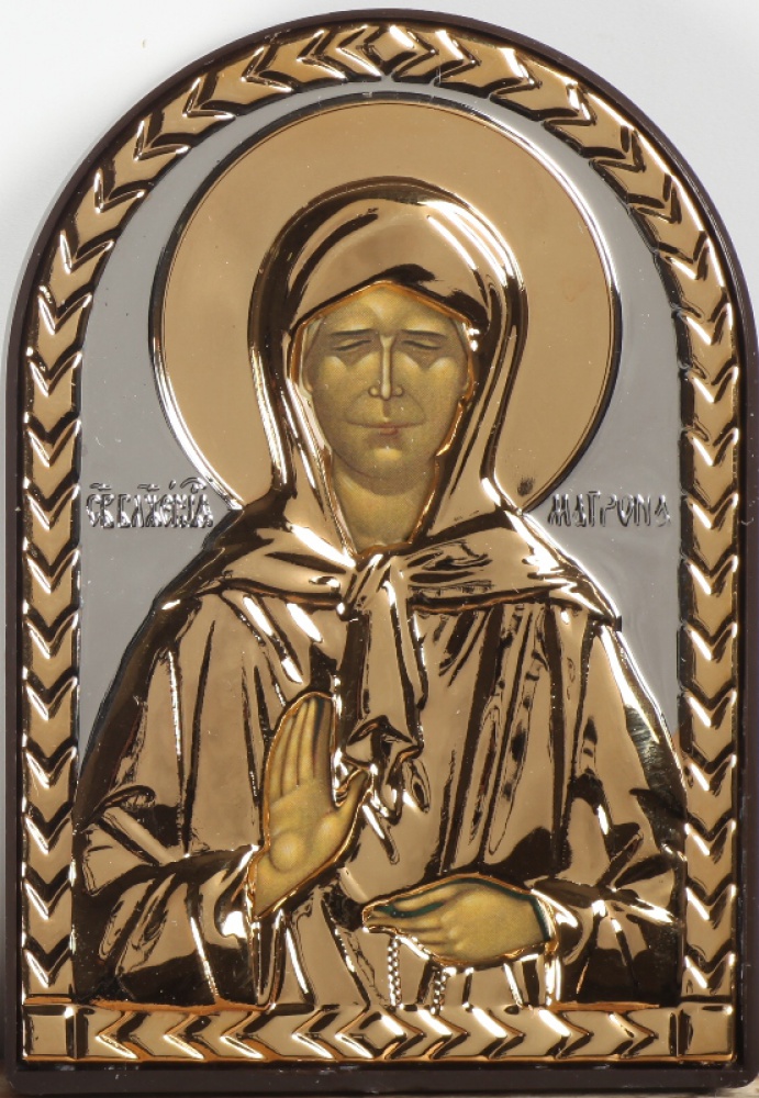 Икона в пластмассовой рамке 6х9 арочная риза №2 Матрона Московская (с венчиком)
