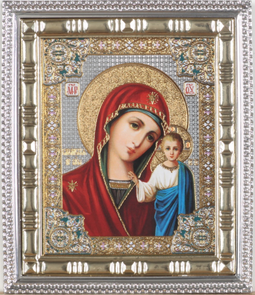 Икона в пластмассовой рамке 7х9 металлизированная Казанская БМ 14