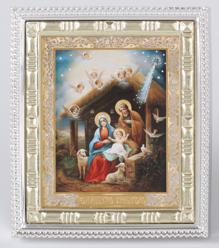 Икона в пластмассовой рамке 7х9 металлизированная Рождество Христово 1