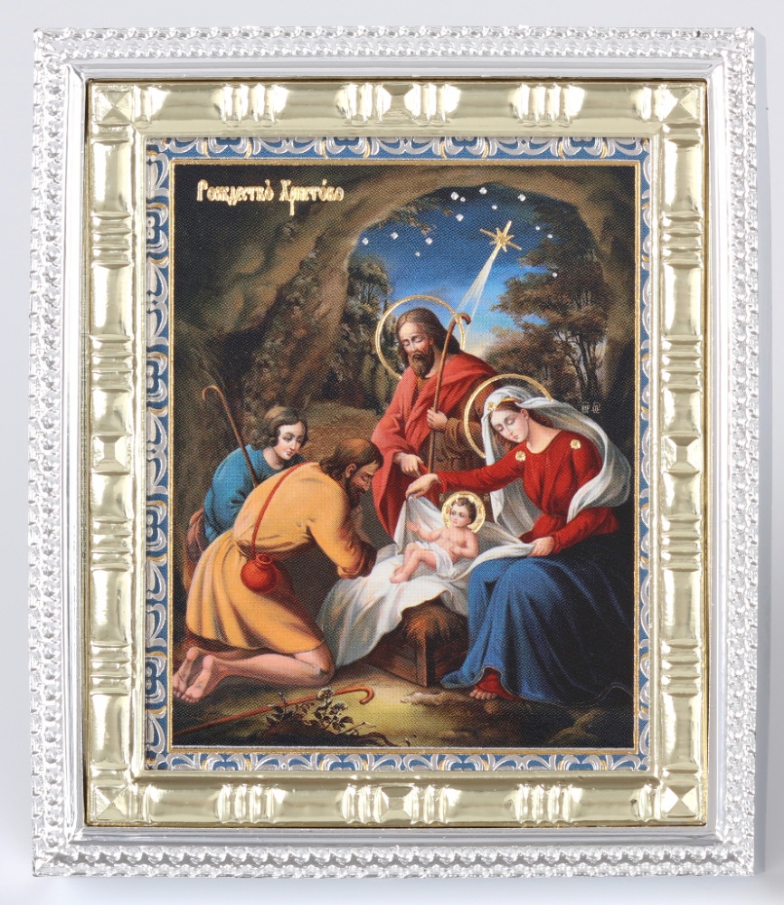Икона в пластмассовой рамке 7х9 металлизированная Рождество Христово 50