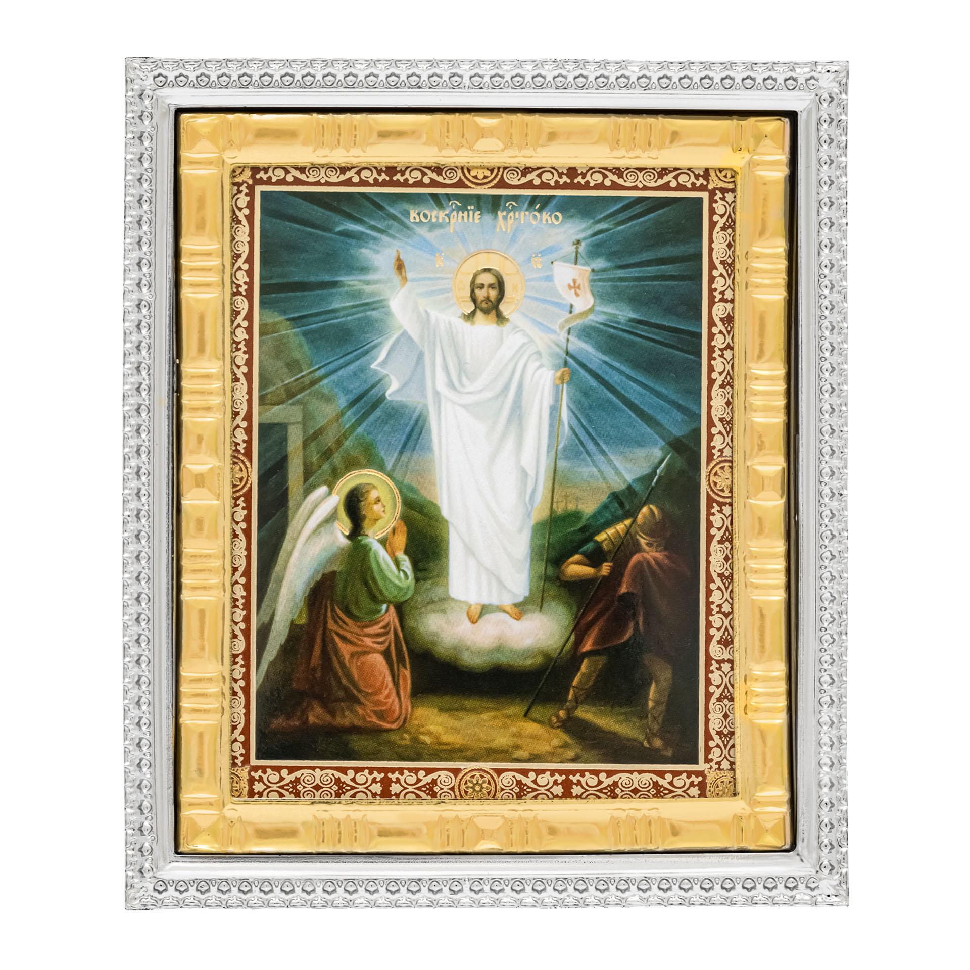 Икона в пластмассовой рамке 7х9 металлизированная Воскресение Христово 56