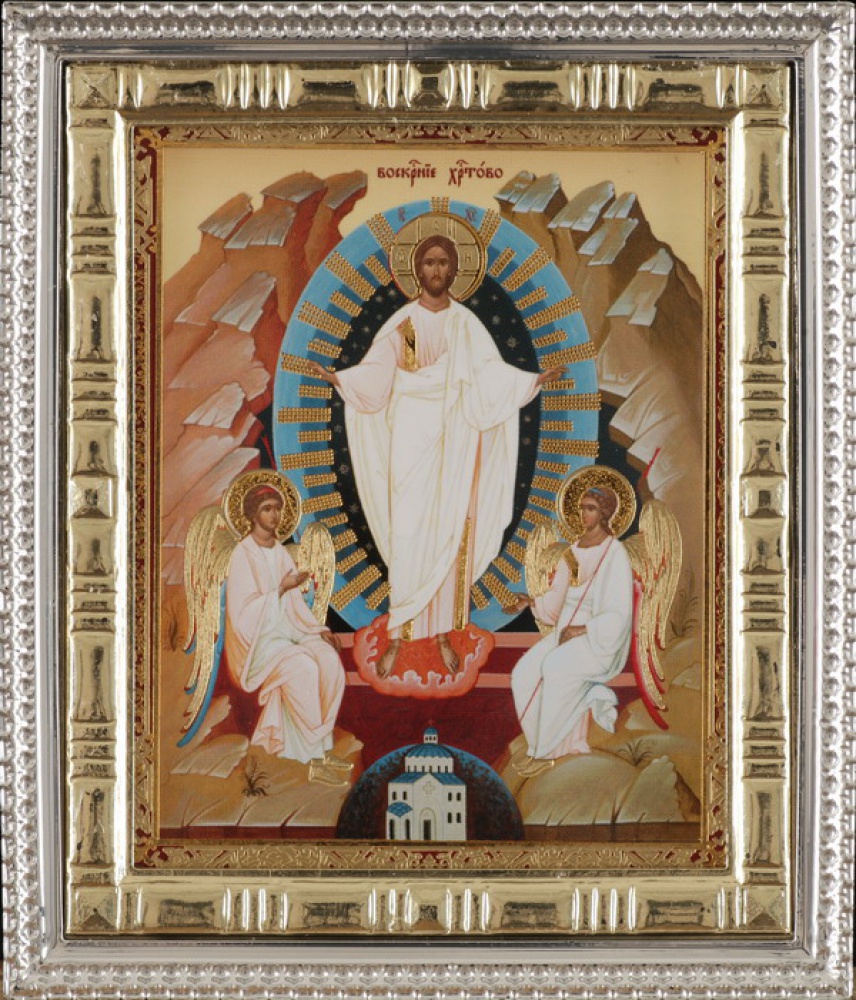 Икона в пластмассовой рамке 7х9 металлизированная Воскресение Христово 59