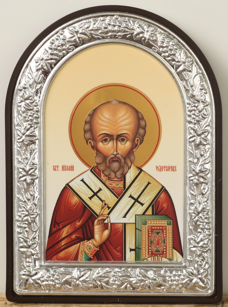 Икона в пластмассовой рамке 9х12 арочная №1 Николай Чудотворец 10