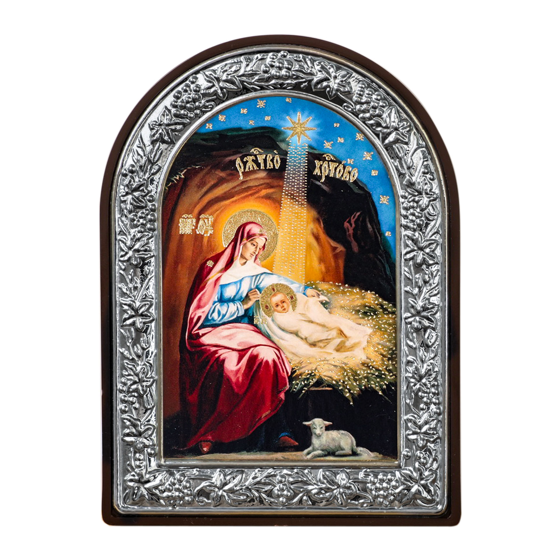 Икона в пластмассовой рамке 9х12 арочная №1 Рождество Христово 1