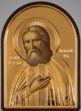 Икона в пластмассовой рамке 9х12 арочная риза №1 Серафим Саровский