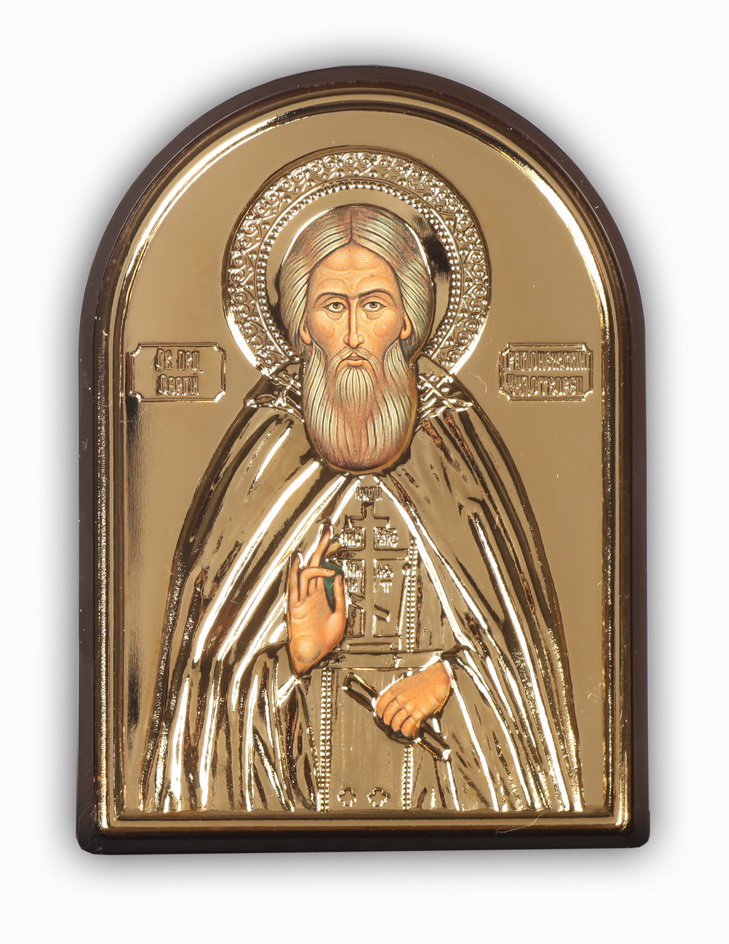 Икона в пластмассовой рамке 9х12 арочная риза №1 Сергий Радонежский