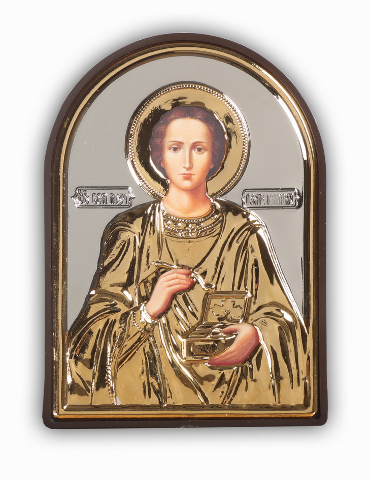 Икона в пластмассовой рамке 9х12 арочная риза №2 Пантелеимон