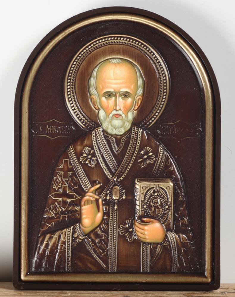Икона в пластмассовой рамке 9х12 арочная риза №3 Николай Чудотворец