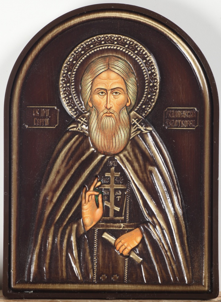 Икона в пластмассовой рамке 9х12 арочная риза №3 Сергий Радонежский