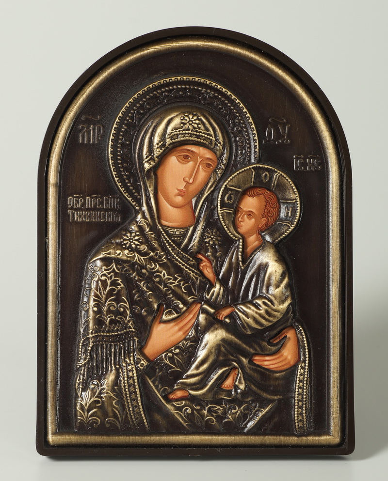 Икона в пластмассовой рамке 9х12 арочная риза №3 Тихвинская БМ