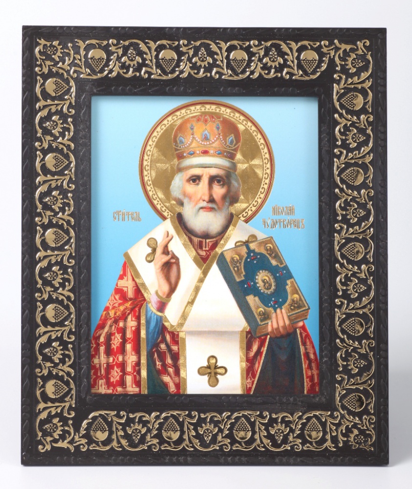 Икона в пластмассовой рамке 9х13 с виноградной лозой Николай Чудотворец 14