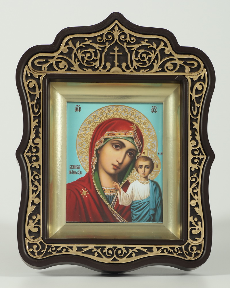 Икона в пластмассовой рамке Киот 11х13 фигурный пластмассовый Казанская БМ 1
