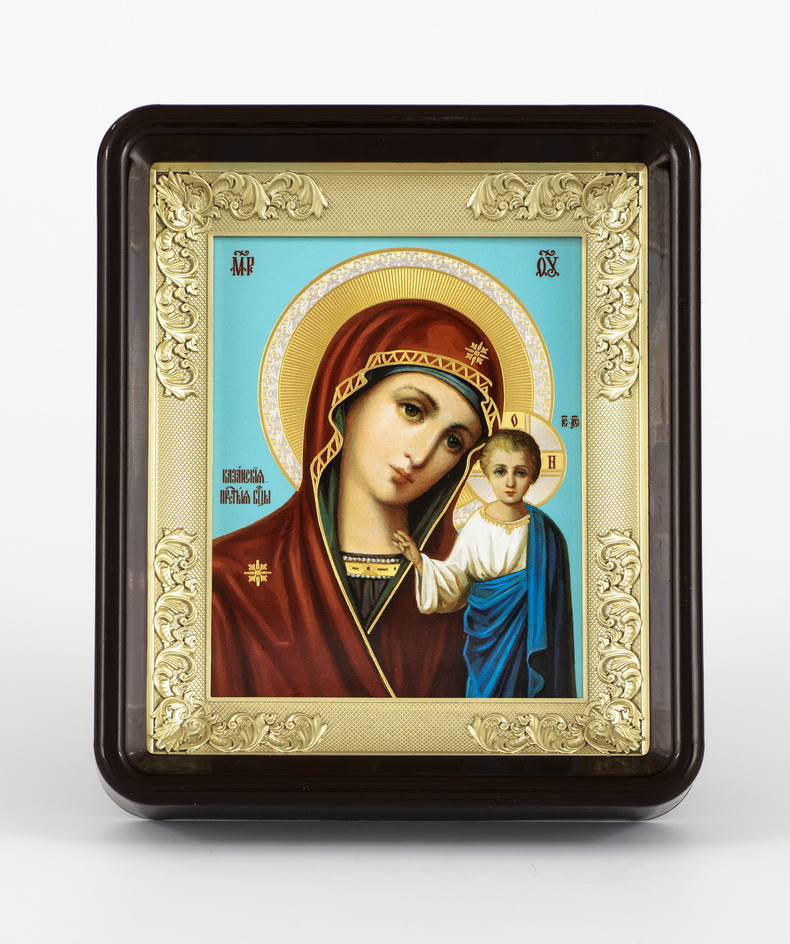 Икона в пластмассовой рамке Киот 11х13 латун. подрамник №2 Казанская БМ 14