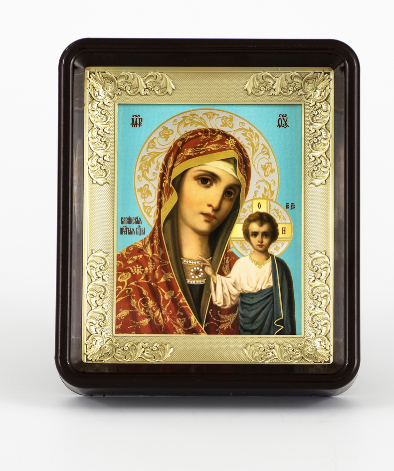 Икона в пластмассовой рамке Киот 11х13 латун. подрамник №2 Казанская БМ 7