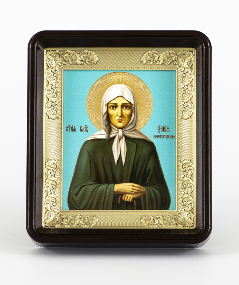 Икона в пластмассовой рамке Киот 11х13 латун. подрамник №2 Ксения Петербургская блж.