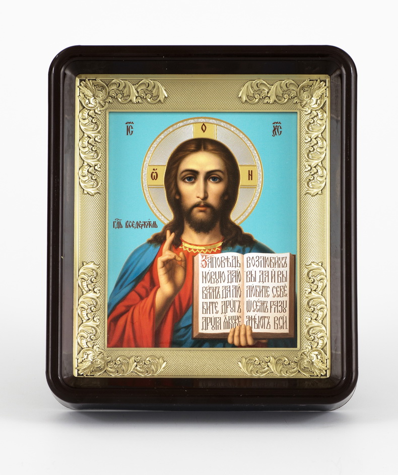 Икона в пластмассовой рамке Киот 11х13 латун. подрамник №2 Спаситель 1