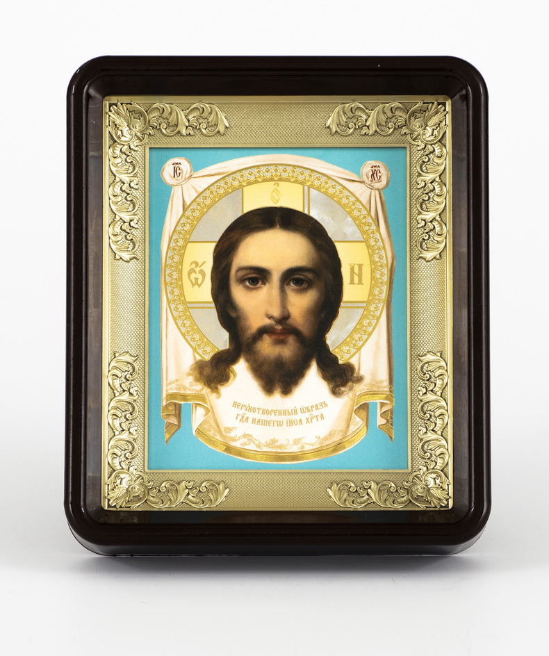 Икона в пластмассовой рамке Киот 11х13 латун. подрамник №2 Спаситель 7