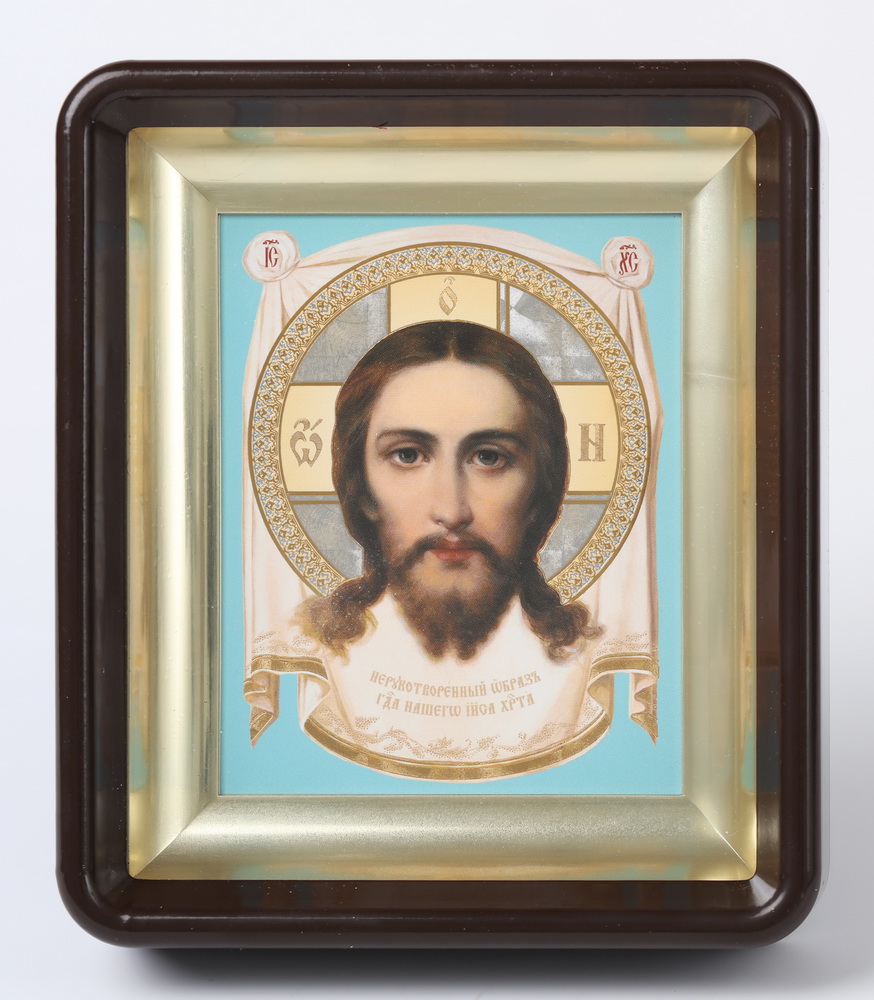 Икона в пластмассовой рамке Киот 11х13 латун. подрамник
