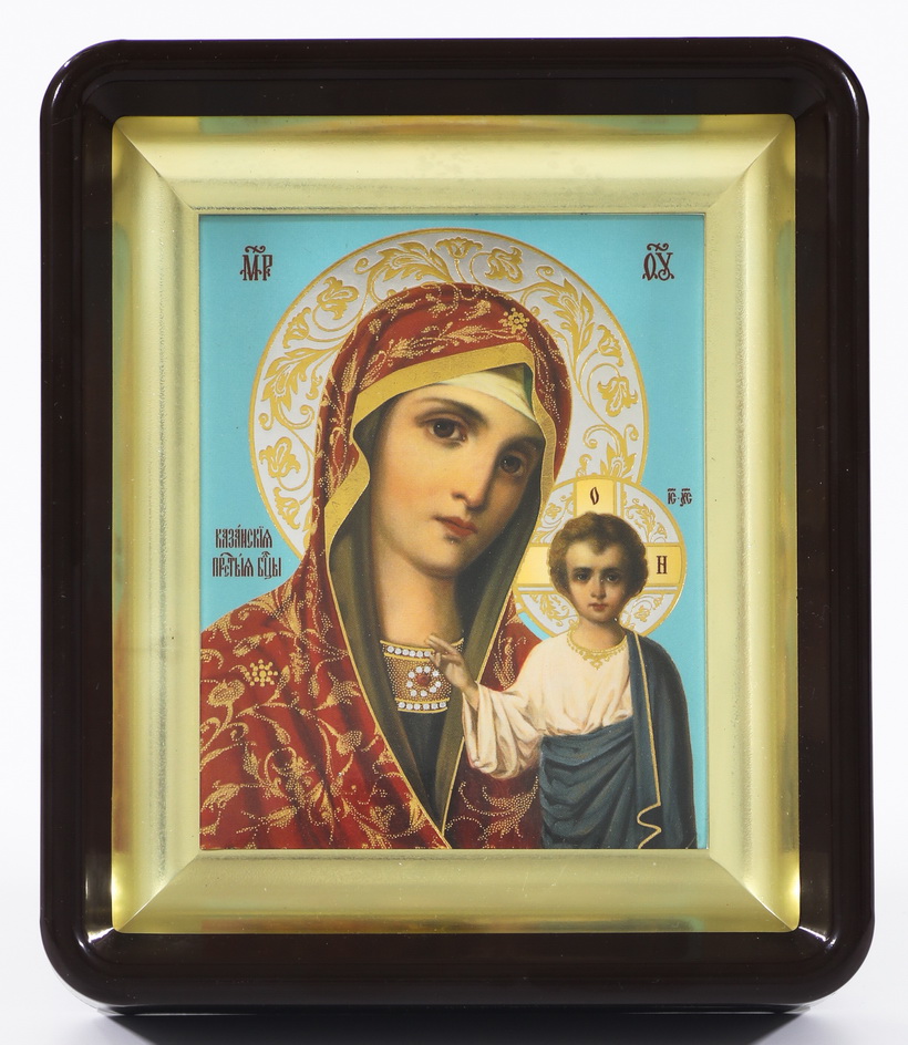 Икона в пластмассовой рамке Киот 11х13 латун. подрамник Казанская БМ 7