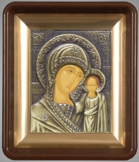 Икона в пластмассовой рамке Киот 11х13 латун. подрамник риза патинированная Казанская БМ