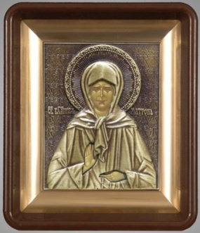 Икона в пластмассовой рамке Киот 11х13 латун. подрамник риза патинированная Матрона Московская (с венчиком)