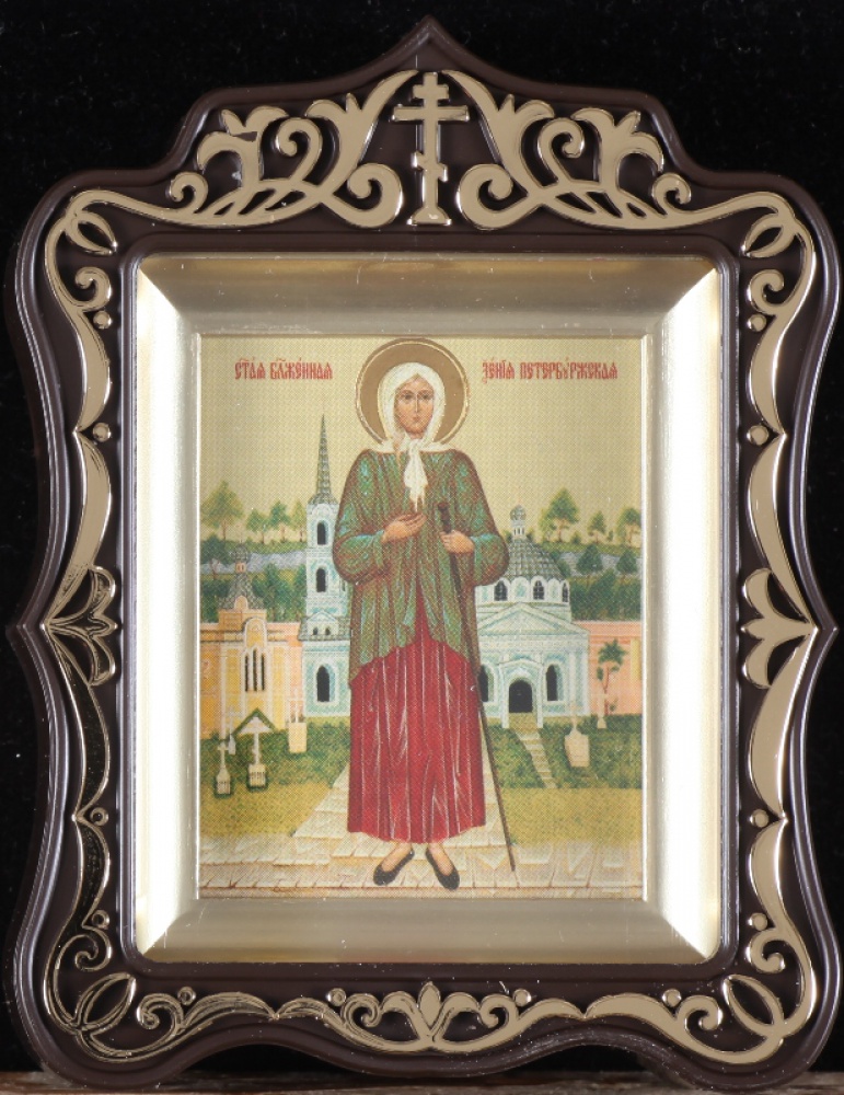 Икона в пластмассовой рамке Киот 6х7 резной латунированный Ксения Петербургская блж.