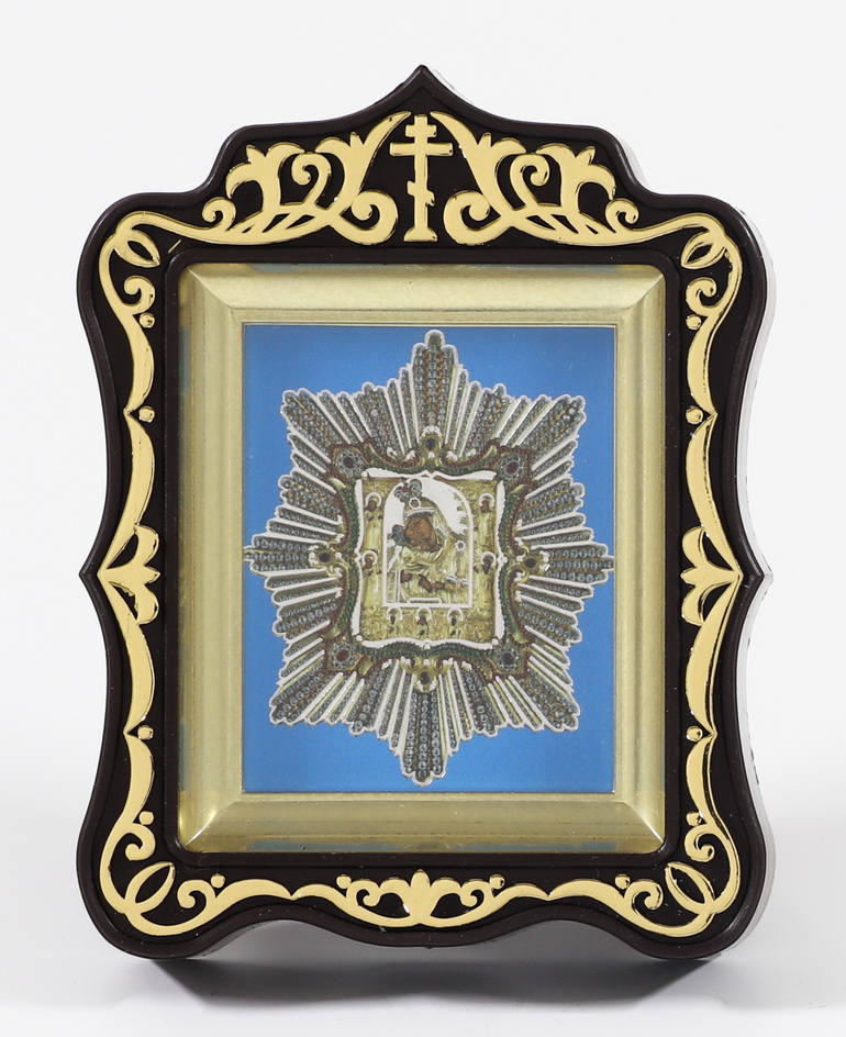 Икона в пластмассовой рамке Киот 6х7 резной латунированный Почаевская БМ