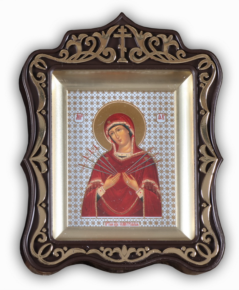 Икона в пластмассовой рамке Киот 6х7 резной латунированный Семистрельная БМ