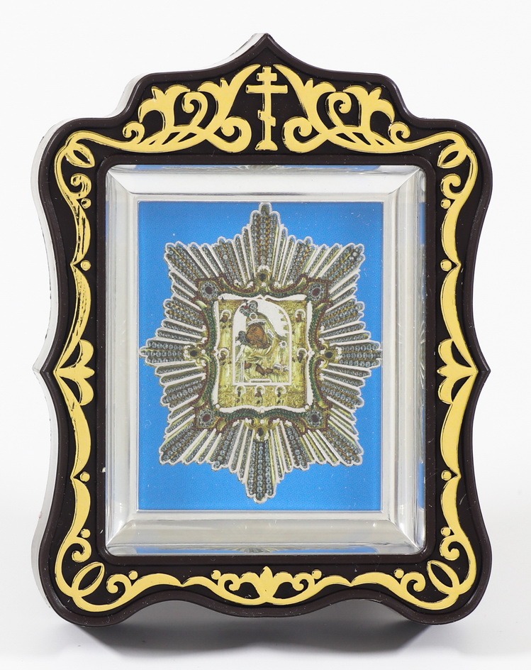 Икона в пластмассовой рамке Киот 6х7 резной металлизированный Почаевская БМ