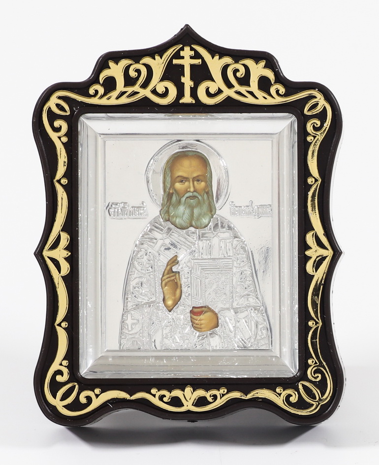 Икона в пластмассовой рамке Киот 6х7 резной металлизированный с ризой Лука