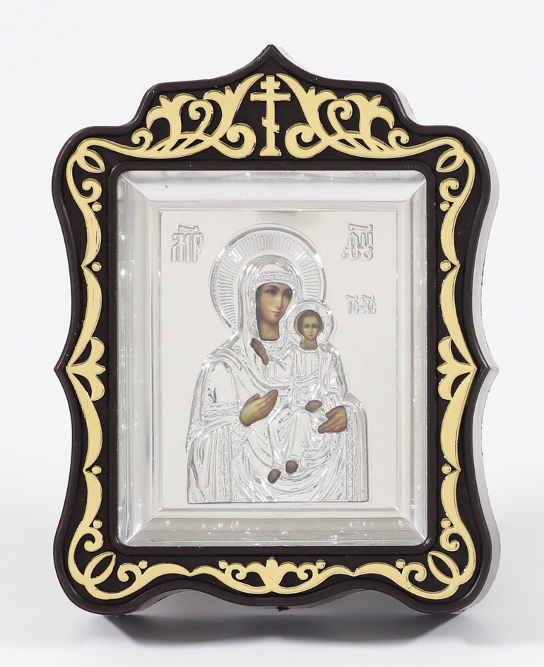 Икона в пластмассовой рамке Киот 6х7 резной металлизированный с ризой Смоленская БМ