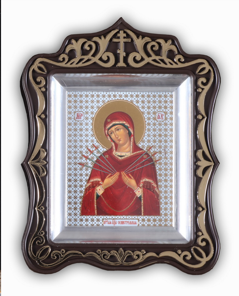 Икона в пластмассовой рамке Киот 6х7 резной металлизированный Семистрельная БМ