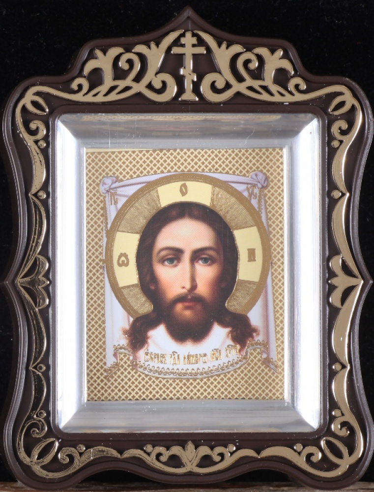 Икона в пластмассовой рамке Киот 6х7 резной металлизированный Спас Нерукотворный