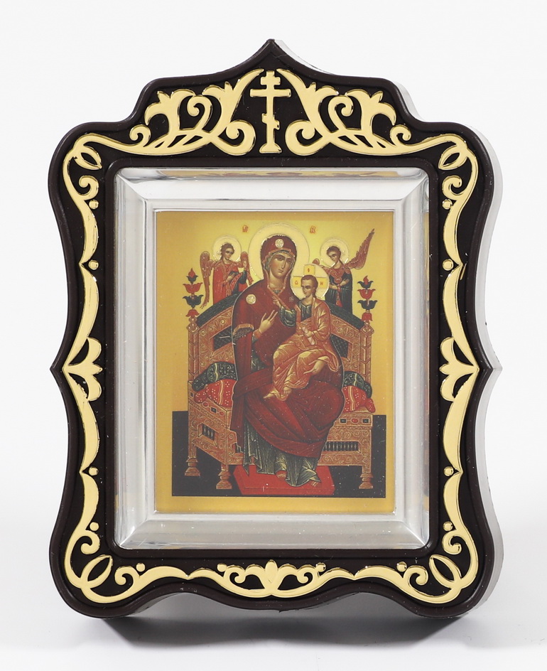 Икона в пластмассовой рамке Киот 6х7 резной металлизированный Всецарица