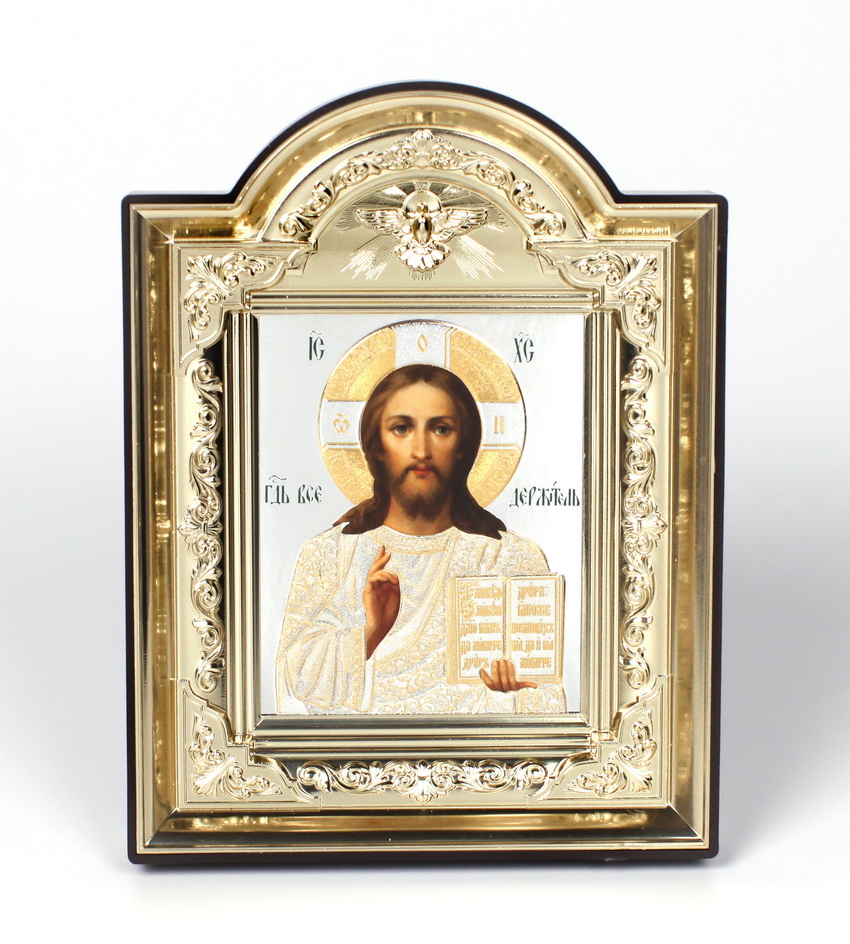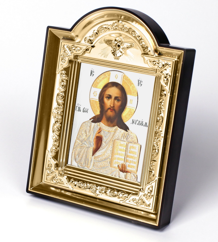 Икона в пластмассовой рамке Киот фигурный 14х19 (со Святым духом) Спаситель