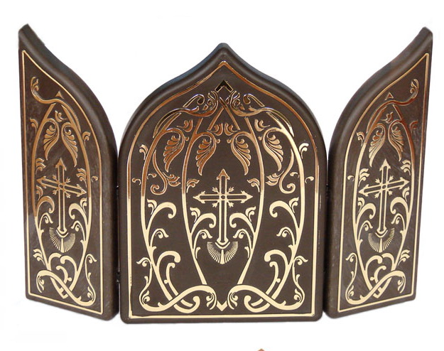 Икона в пластмассовой рамке Складень 12х18 тройной латунированный