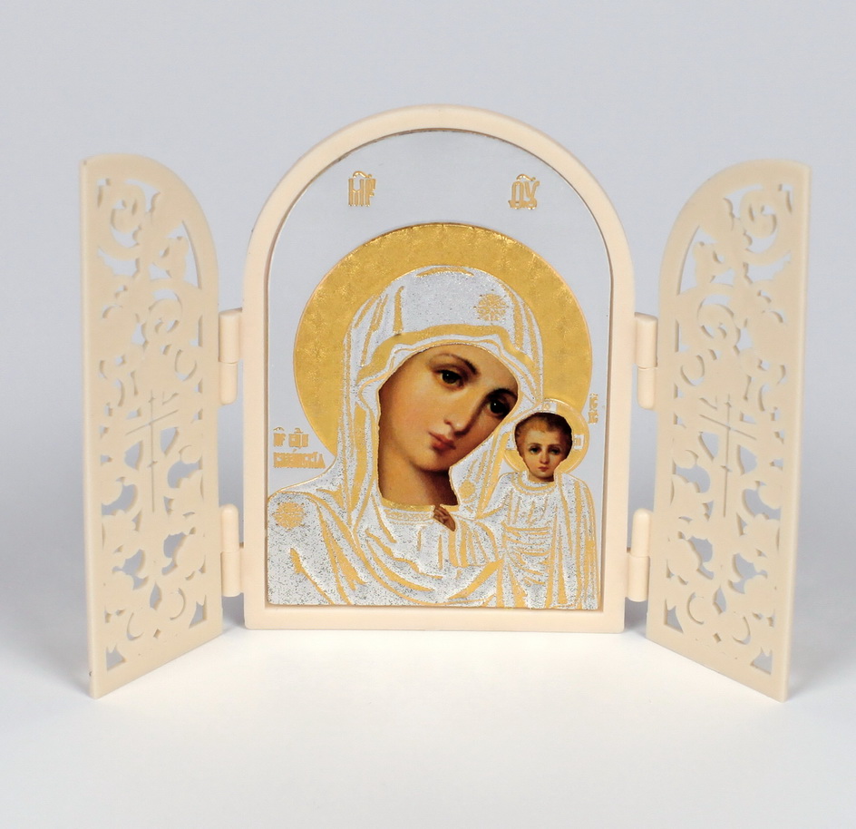 Икона в пластмассовой рамке Складень 5х7,5 арочный резной Казанская БМ
