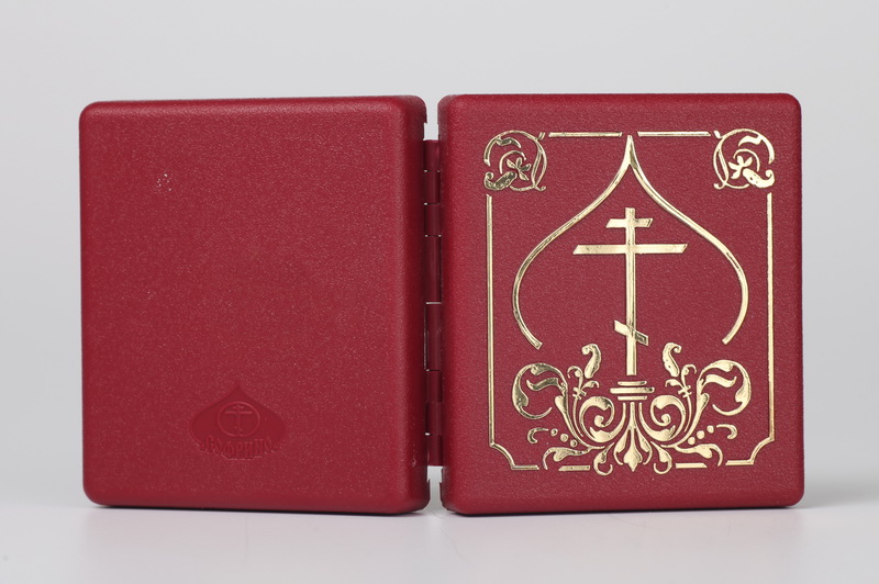 Икона в пластмассовой рамке Складень двойной 6х7 латунированный(тиснение)