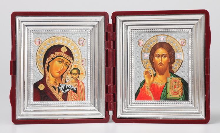 Икона в пластмассовой рамке Складень двойной 6х7 металлизированный(тиснение)