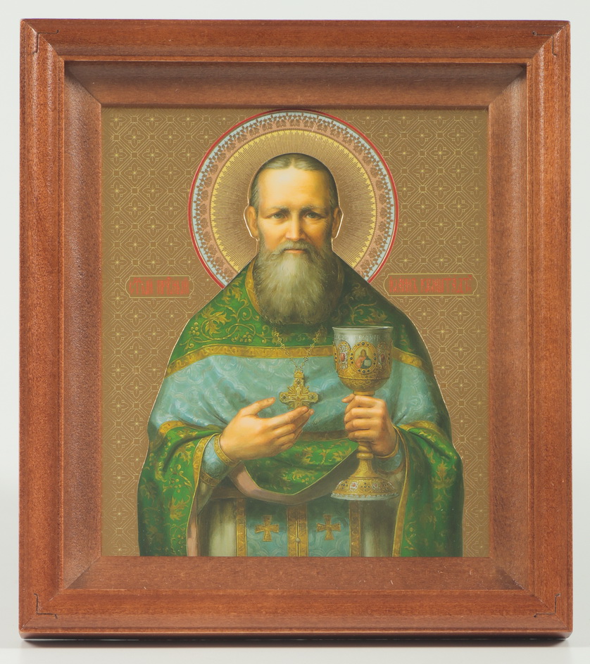 Икона в рамке-киоте 13х15 тиснение с венчиком Иоанн Кронштадтский