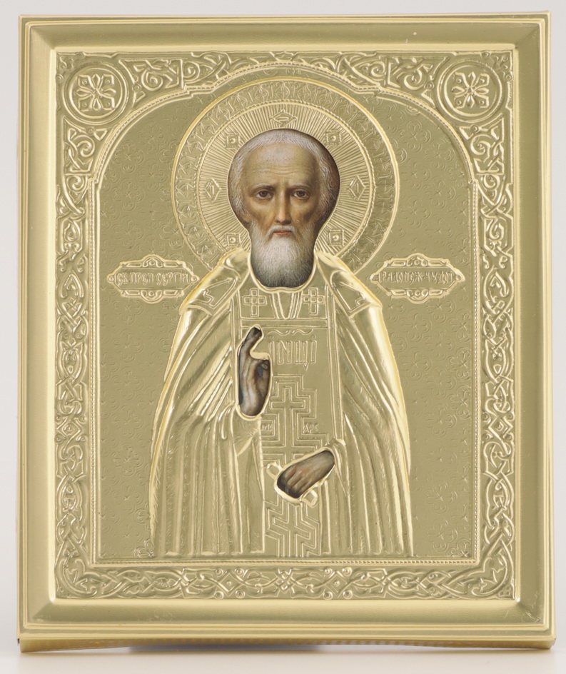 Икона в ризе 11х13 объемная Сергий Радонежский