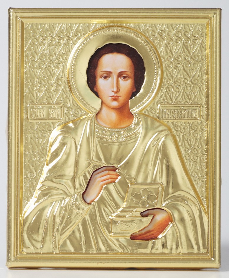 Икона в ризе 9х11 объемная, пленка Пантелеимон