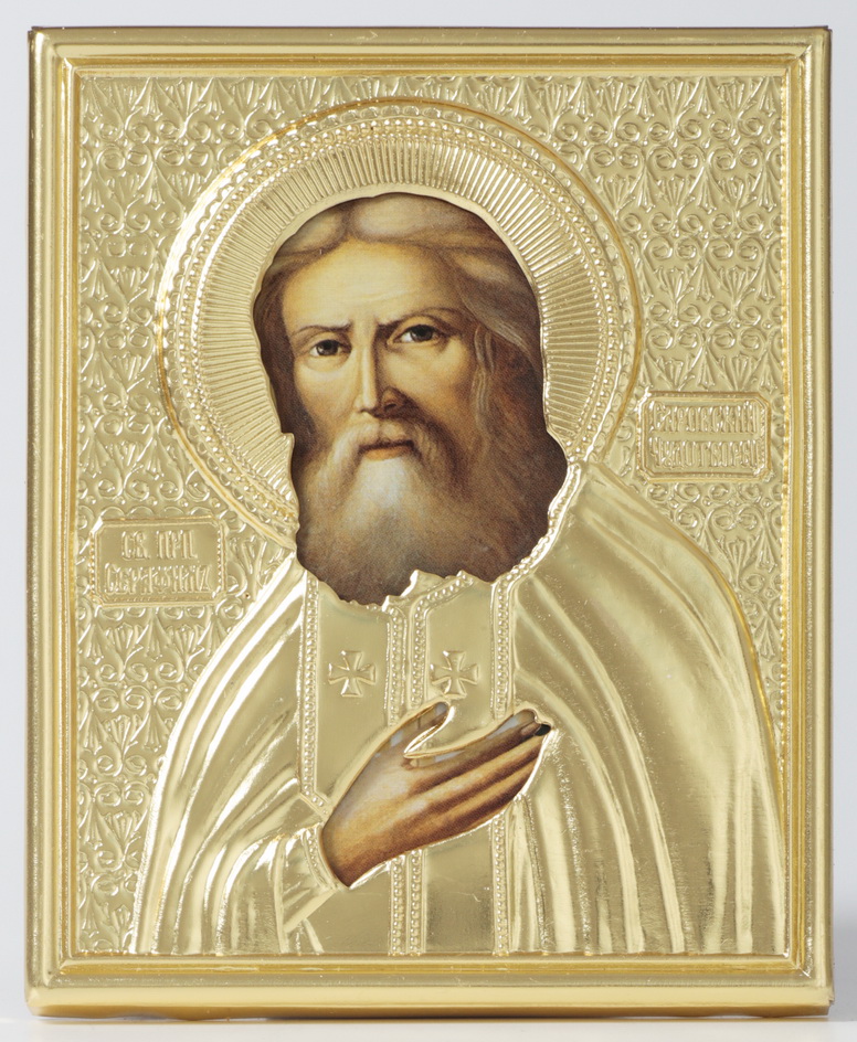 Икона в ризе 9х11 объемная, пленка Серафим Саровский