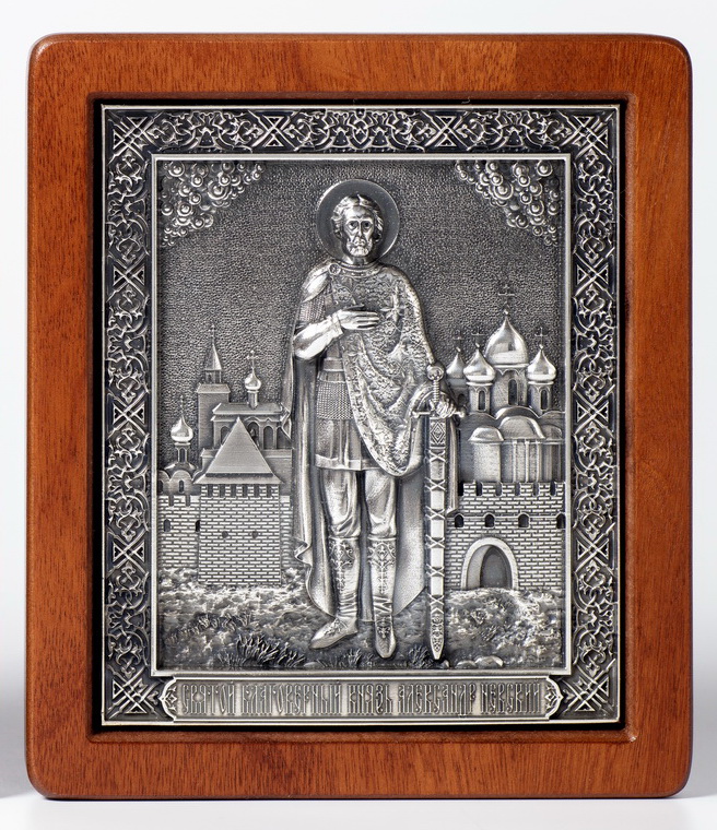 Икона в ризе "Александр Невский" , гальванопластика с серебрением