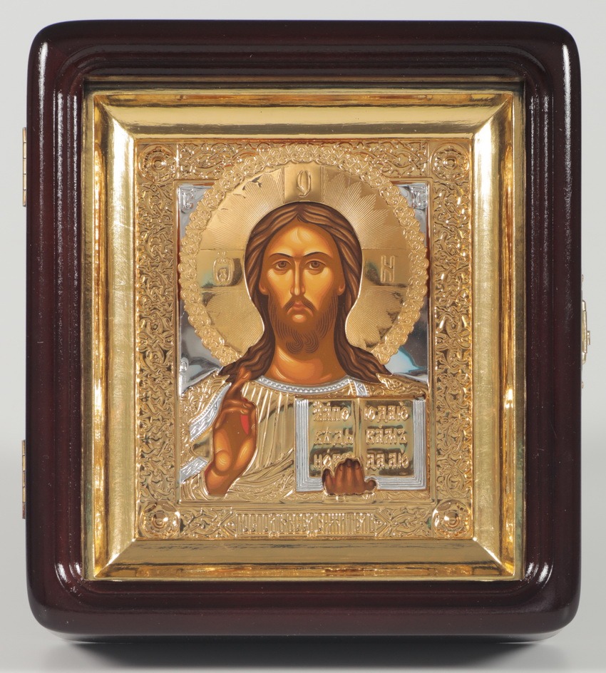 Икона в штампованном окладе 11*13 серебро / киот / золочение / Господь Вседержитель (УИН)