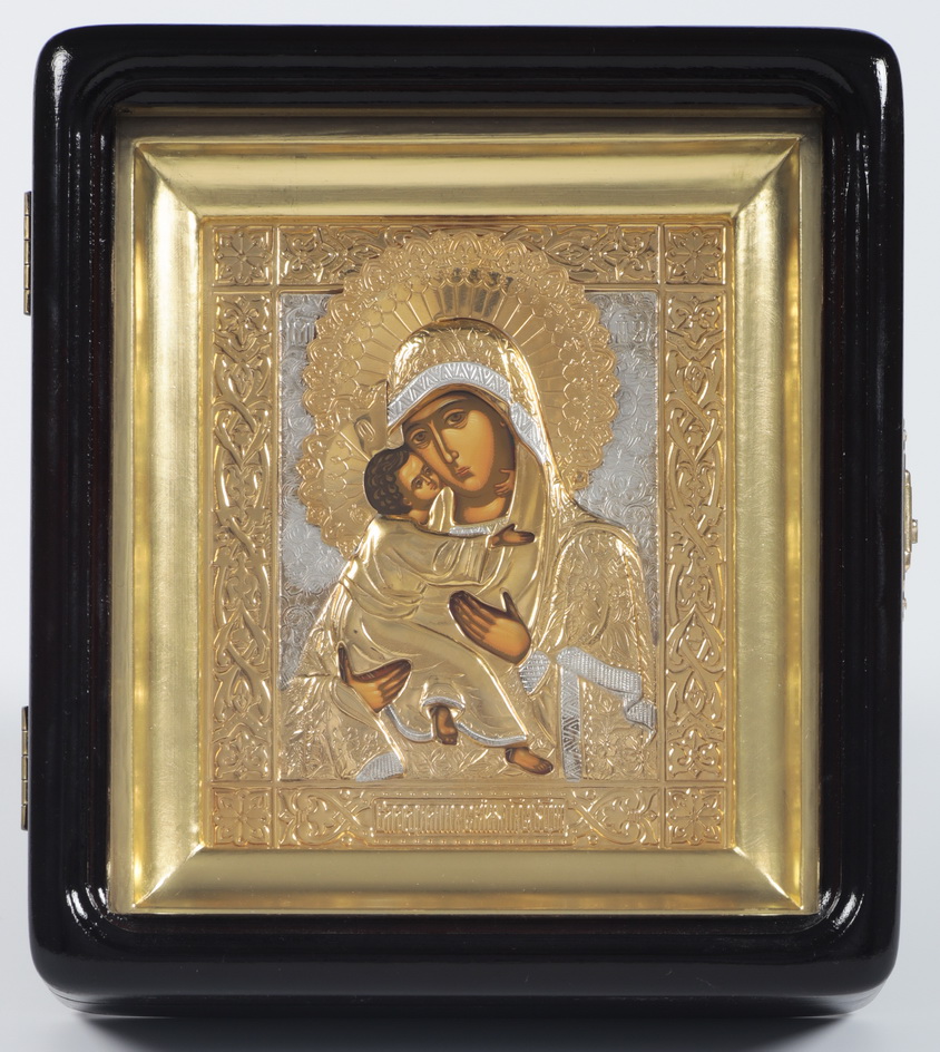 Икона в штампованном окладе 11*13 серебро / киот / золочение / Владимирская БМ (УИН)