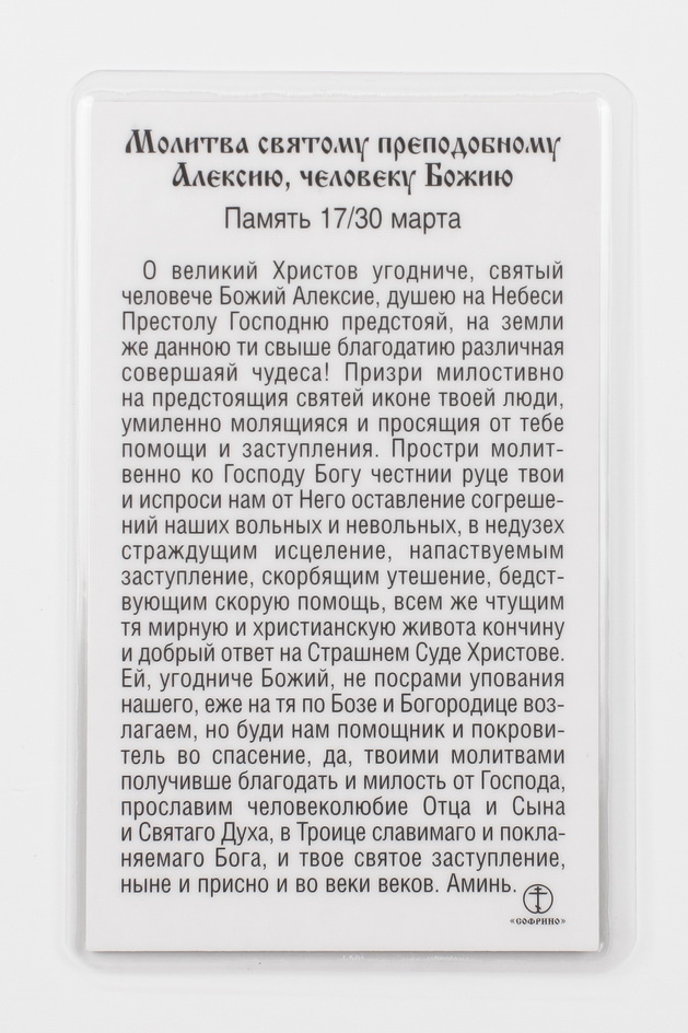 Икона в жесткой ламинации 5х8 с оборотом Алексий - человек Божий